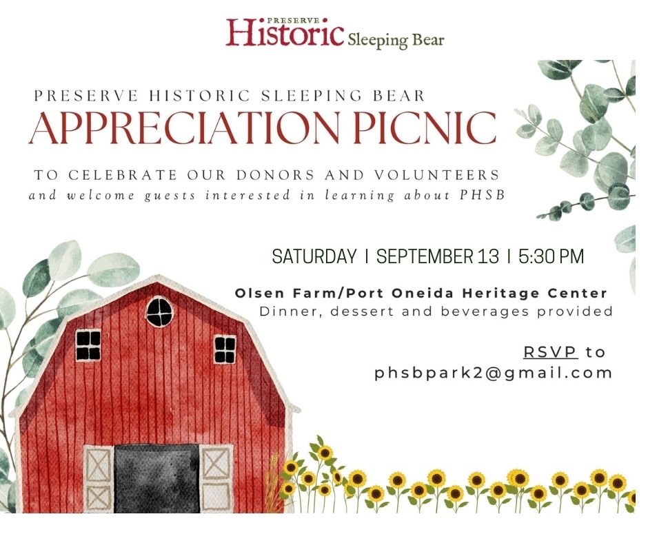 Sleeping Bear’s Historic Architect along with the Park’s Volunteer Coordinator have spearheaded the journey of preserving these varieties with the help of Leelanau Conservation District orchardist Tom Adams, Port Oneida descendant Jim Kelderhouse, and Preserve Historic Sleeping Bear whose role has been to fund the supplies for grafting, planting supplies, and fencing and assist with pruning. Park pruning workshops are held the first Friday of May. To sign up email Kimberly_Mann@nps.gov. To help fund the preservation, donate here.