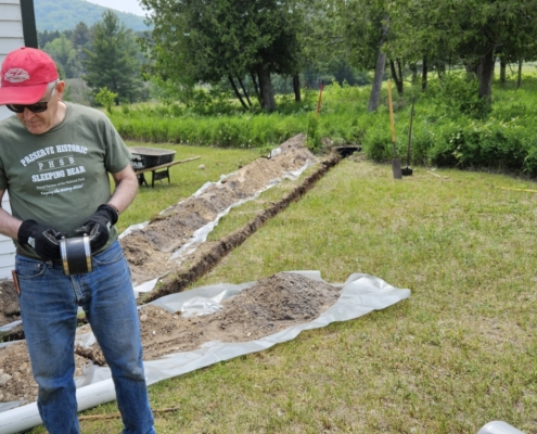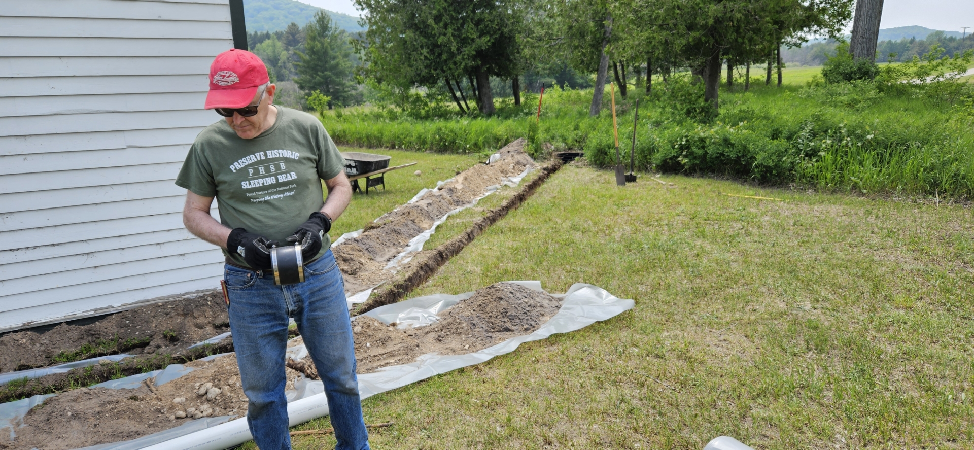 In June 2025, we were hard at work at Sleeping Bear Dunes National Lakeshore’s annual barn workshop at the Ole Olsen farm. PHSB took on three projects at the farmhouse. Due to water damage, siding was replaced on an entire section as well as the drip line and flashing. The second project was roof repairs. Finally, we did a lot of digging to install a new drainage system to move water away from the house and prevent further deterioration to the foundation. Thank you to this dedicated crew! The workshop completed numerous projects at this late 1800s farm in a beautiful setting visited by many park hikers.